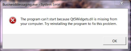 How to resolve the error "The program can't start because Qt5Widgets.dll is missing from your computer"